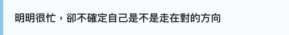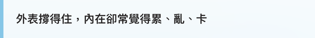 你很有能力,也非常努力,對未來有憧憬、對自己有期許。但在高節奏與多重壓力下,往往很難有系統地整理思緒、檢視判斷。